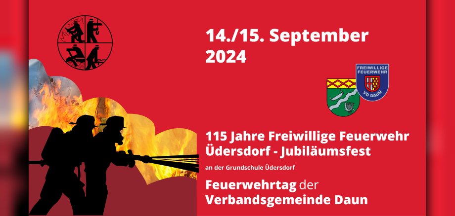 Am 14. und 15. September 2024 wird rund um die Grundschule Üdersdorf einiges geboten, denn es gibt gleich mehrfachen Grund zum Feiern: Neben dem Feuerwehrtag der Feuerwehren der Verbandsgemeinde Daun feiern wir auch das 115-jährige Jubiläum der Freiwilligen Feuerwehr Üdersdorf, verbunden mit dem 40-jährigen Bestehen der Jugendfeuerwehr und des Fördervereins der Freiwilligen Feuerwehr Üdersdorf.