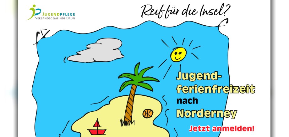 Wie wäre es mit einer Tour im Sommer nach Norderney? Vom 14.07.-21.07.2024 fahrt ihr mit der Jugendpflege der Verbandsgemeinde Daun und 25 anderen Sonnenanbetern an die Nordsee. Dort könnt ihr das Meer, die Wellen und das Watt erleben, wenn ihr 14-17 Jahre alt seid. Schöne Strände laden ein zum Chillen, Baden, Beachvolleyball und Sonne genießen. Ihr könnt die Insel mit dem Rad erkunden, die einzigartige weiße Düne besuchen, den Leuchtturm erklimmen u. v. m.